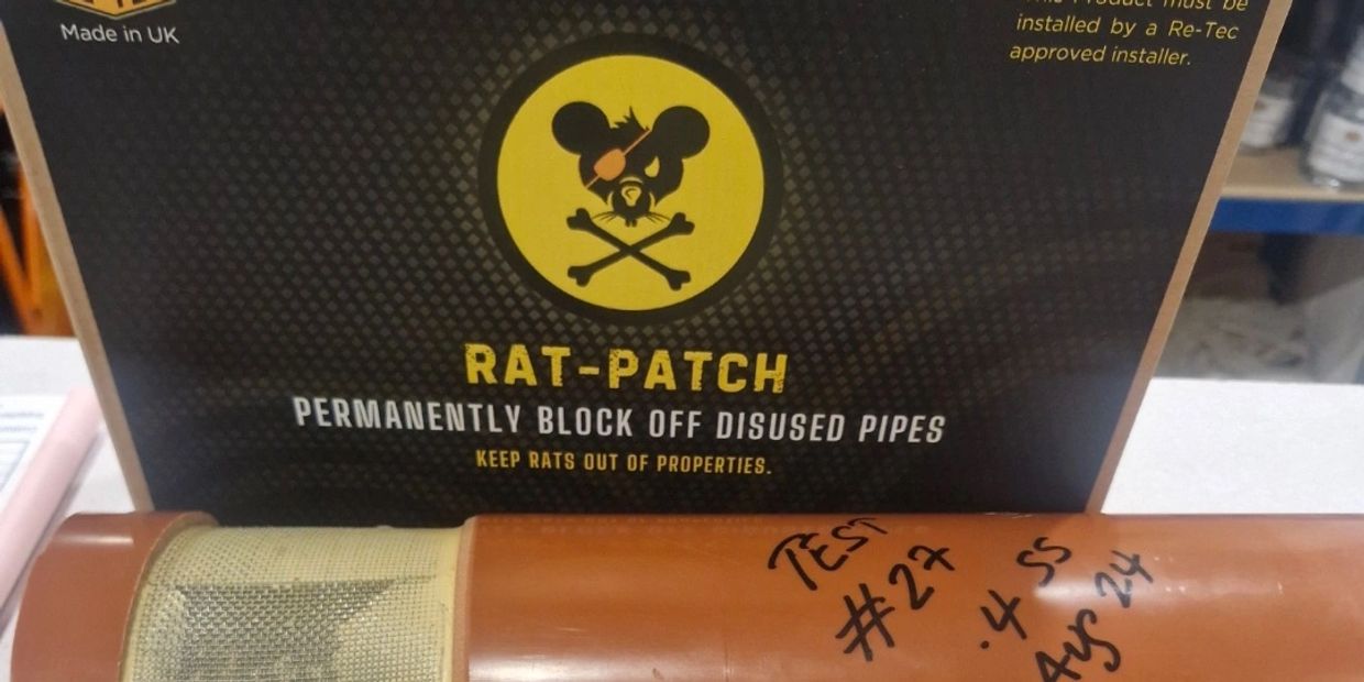 When the repair kit is installed to block off a disused pipe, the stainless steel sheet reinforces the fibreglass matting and stops the rats from chewing through the material, keeping the disused pipe rat free.